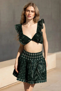 Zoé is a frilly crop top with a smocked back, designed to suit all body types! Pia is romantic, chic, and bohemian. With its smocked waistband, it fits all silhouettes perfectly.