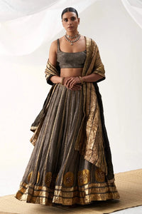 Composition: Top- Tissue, Bottom- Tissue, Dupattas- Lampi Color: Black Fit: Tailored Fit Components: 3 (Blouse, Lehenga, Dupatta) Product Code: SVEITRH-TS117
