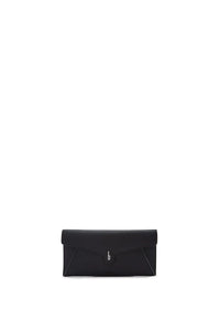 Handcrafted from supple pebble-grain leather, the Kim Pebble Black Wallet features a sleek, elongated silhouette. It offers a secure exterior zipper closure and seven interior wall pockets for ample organization. A discreet magnetic snap pocket adds an extra layer of convenience, making this wallet the perfect refined companion for everyday use.