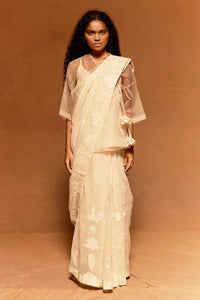 The exquisite Kirei Cotton Silk saree combines hand-screen printing with delicate appliquand handcrafted tassels, creating a visually captivating piece. Its soft, luxurious cotton silk fabric offers a refined drape, while the timeless design ensures it remains a cherished addition to any wardrobe. Beautiful in its simplicity and detail, this saree exudes understated elegance, perfect for a variety of occasions.