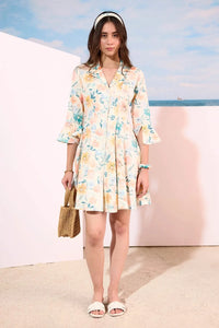 Effortlessly chic and breezy, this pastel floral-printed Krabi Shirt Dress is the epitome of summer elegance. Featuring a relaxed silhouette, flared sleeves, and a button-down front, it blends comfort with timeless charm. Complete the look with a woven tote, white sandals, and a headband for a refined yet relaxed beachside ensemble.
