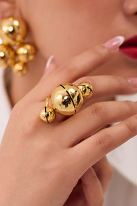 Inspired by the harmonious blend of lustres, textures, geometry, and translucent hues, the Kyoto Ring is a stunning example of modern elegance. Crafted from premium brass and finished with luxurious 22KT gold plating, this ring is designed to make a bold yet refined statement. Its unique design captures the essence of contemporary sophistication, making it a standout piece in any collection.