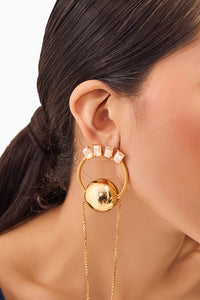 Elegant and timeless, the La Seine Earrings are crafted from premium brass, embellished with radiant Swarovski crystals, and finished with a rich 22KT gold plating. Inspired by the interplay of lustrous textures and sculptural shapes, this design embodies refined sophistication with a contemporary edge. The La Seine Earrings are the perfect statement piece for adding a touch of luxury to any occasion.