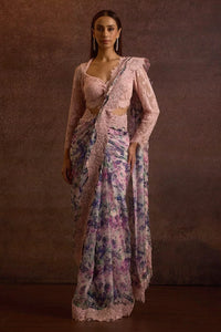 Laghvi Pink Embellished Full Sleeves Blouse With Printed Silk Organza Pre Stitched Saree