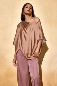 An ode to fluid form. The Lara Top features dramatic sleeves and a soft cut , off-shoulder neckline, crafted in lustrous satin that drapes like liquid. Voluminous yet refined, it pairs structure with softness, offering effortless movement and statement appeal. Designed to elevate your day-to-night wardrobe with minimal effort, maximum impact.