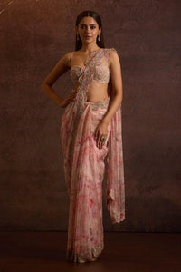 Lasya Baby Pink Embellished Silk Organza Pre Stitched Saree Set