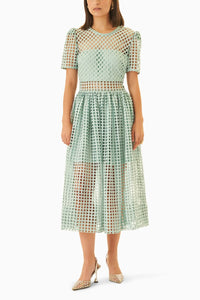 Lattice Teal Blue Lace Sheer Panelled Midi Dress