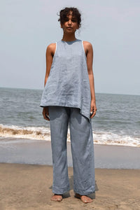 Introducing the Lauren Halter Asymmetrical Top, a relaxed-fit piece that effortlessly blends style and comfort. This halter neck top features a trendy asymmetric hem and beautiful embroidery around the armholes, making it a standout addition to your wardrobe. Perfect for both casual outings and dressier occasions!