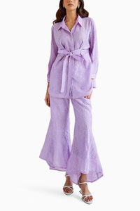 Lavender Bandhani Knotted Shirt with Tulip Pants