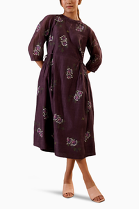 Lavender Dahlia Block Print Side String Dress