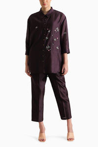 Refresh your wardrobe with our Lavender Pin Tuck Shirt, beautifully crafted from luxurious silk chanderi and enhanced with machine embroidery. Paired with straight pants in silk chanderi fabric, this set offers a perfect blend of elegance and comfort. Complete with a stylish shirt, tailored pants, and a slip, it’s ideal for both casual outings and special occasions.