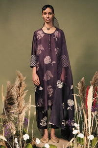 Featuring Lavender Printed Kurta Set by ARCVSH, double-layer silk Chanderi tunic with delicate sleeve embroidery and lavender discharge prints, paired with an organza and silk Chanderi dupatta. A harmonious blend of softness and intricate detail for graceful occasions.