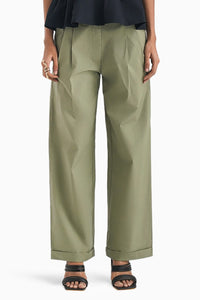 Le plisse olive roll-up pants from Notre Ame combine comfort and style with stretch cotton and pleated design. These pleated pants offer a flattering fit that can be dressed up or down. The roll-up hem adds a touch of versatility, while the classic curved back pockets provide a timeless charm.