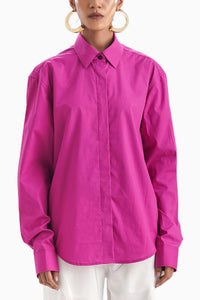 Handcrafted in soft breathable cotton featuring a rich pink hue - le rose conceal shirt from Notre Ame boasts a sleek, professional design. Detailed with discreet conceal placket, this summer staple adds a sophistication and exclusivity to your look.