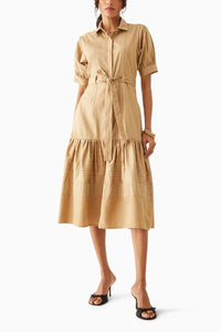 Composition- Cotton Satin Color- Sand Fit- Relaxed Componnets- 1 Product Code- SVESNOBSN-DR-LEN-LN-01