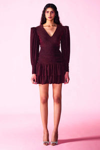 Carefully crafted in a mahroon lycra fabric and accentuated with subtle details, this full-sleeved dress with embroidered button will make you feel spotlight-ready.