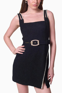 Redefine sophistication with this captivating mini dress, featuring exquisite pearl detailing. The square neckline and sleeveless design add a modern touch, while the pearl accents on the straps and skirt elevate its elegance. With a flattering wrap style and a detachable fabric belt with a pearl-embellished buckle, this stunning LBD is perfect for glamorous evening events or chic dinner parties. Complete with an invisible zip closure and fully lined interior, this dress is a timeless addition to your wardrobe.
