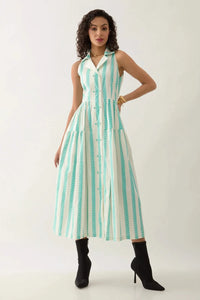 Fabric- Cotton Satin Color- Off White, Sea Green Catkin Fit- Fit And Flared Components- 1 Product Code- SVESNOBSN-DR-LIA-CN-01