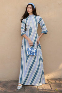 Featuring the Light Illusion Dress by DeCastro Moda, this slim-fit dress boasts a chic mandarin collar and elegant puff gathered sleeves, blending modern sophistication with delicate detailing.