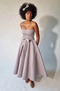 The Light Lilac Embroidered Quilted Skirt Set combines delicate embroidery with structured elegance. Made from soft cotton, this two-piece set features a beautifully detailed jacket and a quilted skirt, offering a sophisticated, feminine silhouette in a serene lilac hue.