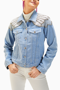 Light Wash Pearl Yoke Embellished Denim Jacket