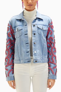 Light Wash Pink Stone Embellished Denim Jacket