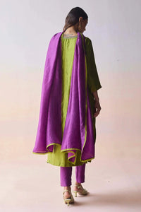 The Lightfall Dupatta drapes with quiet elegance, where flowing silk meets subtle structural detailing. Its organza border, attached with a decorative seam and finished with contrast hemming, frames the fabric with a refined grace, allowing every movement to catch the light softly.