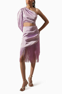 The Charleston dress has an asymmetric neckline, is draped beautifully across the bust with a cutout detailing and has a long sleeve with an elasticated cuff.