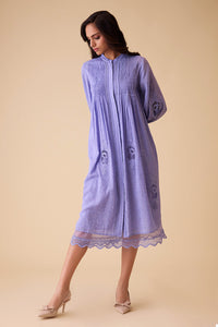 Featuring exquisite textured cotton, cut-out lace, and pintuck detailing, the Meera dress effortlessly blends femininity with comfort. Paired with a separate, slightly longer slip adorned with lace, it adds an elegant layered touch to this timeless silhouette.