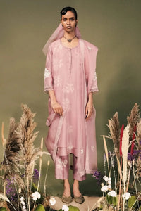 Featuring Lilac Printed Kurta Set by ARCVSH, this double-layer silk Chanderi tunic showcases delicate dori embroidery on the sleeves and soft lilac discharge prints, paired with a lightweight organza dupatta. A graceful blend of subtle hues and intricate craftsmanship.