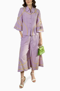 Featuring Lilac Co-Ord Set by Kukoon, this stylish ensemble includes a comfortable shirt and culottes, highlighted with contrasting colors. Perfect for effortless chic, this set offers both comfort and flair, making it a versatile addition to your wardrobe.