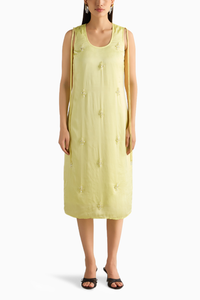 Featuring the Lime Embellished Slip Dress by MellowDrama's Utopia Collection. Crafted from 100% cotton, this sleeveless slip dress in lime features a knee-length cut. It is adorned with crystals on the front, has shoulder cinching with tie detail, and offers a regular fit for a stylish and comfortable look.