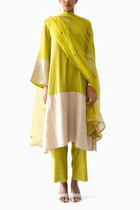 Fabric- Silk Color- Lime Embroidery- Zardozi Fit- Relaxed Components- 3 Product Code- SVEESHAEA1504