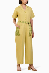 Lime Green Jumpsuit: effortlessly chic and endlessly comfortable. Adorned with an intricately embroidered belt and pockets featuring delicate cutwork, it's a stunning statement piece for any occasion.