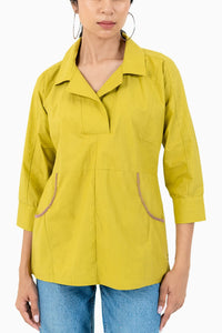 Featuring Lime Green Petunia Shirt by URAIB from The Forest Affair Collection. Tailored from Chanderi fabric, this shirt boasts a bold and stylish look with its captivating Lime Hue, ensuring a distinctive wardrobe essential.
