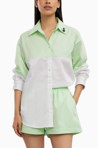 The shirt has an oversized fit and offers a relaxed, contemporary silhouette, perfect for casual or semi-formal occasions. The classic collar is adorned with intricate Swarovski stones. The shirt is crafted with a visible button placket. Full sleeves provide versatility.Paired with comfortable elastic-waist shorts with side pockets, this set effortlessly blends luxury with ease.