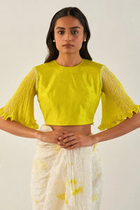 Fabric- 100% Silk Color- Lime Components- 1 Product Code- SVEMEDISS25SWIRLBLOUSELIME
