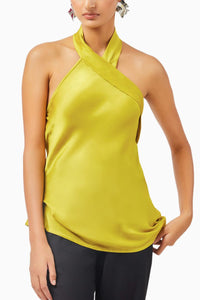 Featuring Cyea Top by Contemponari. Crafted from Modal Satin, this lime yellow top features a flattering slash neck for a chic and modern look. The unique neckline where the closure extends from the back and elegantly trails to the front, the luxurious feel of the fabric and the vibrant shade there are reasons enough for you to fall in love with this top!