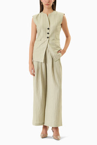 Refined and relaxed, this cotton linen pin-striped coord set offers a chic, breathable style perfect for any occasion.