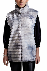 Grey fur jacket, With high neck standing collar, Front opening with hooks & button, Silk lining. Perfect for extreme cold days