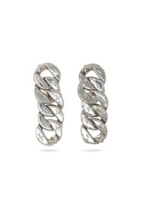 Stylish link chain earrings crafted from copper and brass with a silver finish. These lightweight and versatile earrings add a modern, edgy touch to any outfit, perfect for everyday wear or special occasions.