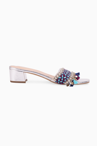 Featuring Linus Silver Blue Heels by 5 Elements by Radhika Gupta. An exquisite Gold Heel Sliders, blending glamour and comfort effortlessly. Luxurious gold heels add sophistication to any outfit. Intricate thread embroidery work elevates the style, making them a chic and versatile choice for fashion-forward individuals. Double cushioning ensures extra comfort.