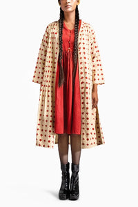 The Nomad midi dress is paired with our empress robe detailed with fine pin tucks ushering you to twirl amidst winter fiestas. The set is further finished with our signature sashiko handwork in golden thread & handmade buttons placed intriguingly. These playful layers are designed to move with you through the joyous and cozy days & evenings.