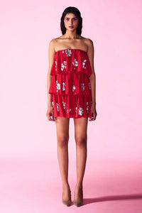 An ideal dress to for a night out in town or on a vacation! The layers in the design with the crafty embellishments gives the dress a fun, young vibe for the girl next door.