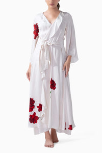 Wrap yourself in elegance with the Lovers & Roses Long Robe. Made from modal, it features a rose print, a ruffled collar band, and long flowy sleeves. This robe is perfect for adding a touch of romance and comfort to your loungewear collection.
