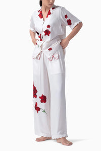 Get comfy in the Lovers & Roses Scallop PJ Set, crafted from soft modal for all-night comfort. This printed pajama Set features a chic shirt with a scalloped collar and hem, while the matching printed pajama pants include charming bow details and red piping on the pockets. Perfect for relaxing in style, this sleepwear and nightwear Set offers a sweet yet stylish look, making it ideal for unwinding after a long day.