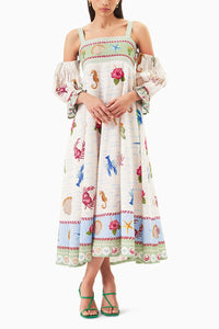 Inspired by the la test interna tiona l trends of the sea son, the Lucia shirt is cra fted from a soft cotton-linen blend tha t offers both comfort a nd brea tha bility. a dorned with the exclusive Miri's print fea turing pla yful sea shore crea tures on a light ecru a nd blue ba se, it ca ptures the essence of a breezy coa sta l esca pe. Na utica l motifs a nd contra st borders, reminiscent of the sea , a dd a refined yet a dventurous touch. With its rela xed silhouette a nd ca refully ta ilored deta ils, this shirt brings together sophistica tion a nd ea se—perfect for va ca tion strolls or sunny da y outings. Ma ke a sta tement the Miri's wa y with this effortlessly stylish piece.