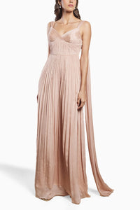 Fabric- Chinon Color- Nude Pink Embroidery- No Embroidery Fit- -Fits True To Size. -Model Height: 5' 9 and is wearing Size “8”. -Garment Full Length: 63" -Designed for a contoured fit at the bust, snatched look at the waist & a draped skirt under. Components-1 Product code- SVEBRINSY02BS23