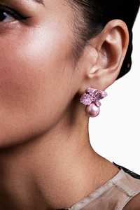 This gorgeous pair of purple hued stud earring is our tribute to one of Nature's most rare offerings, the four leaf clover which is traditionally considered to represent the 4 pillars of Hope, Faith, Love and Luck. Truly unique and enchanting, this earring combines the symbolism of luck with the timeless beauty of freshwater pearls and the sparkling brilliance of zircon gemstones.