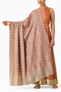 Experience luxury reimagined. Luna Pashmina combines handwoven gulab work with captivating paper mache for a unique, lightweight shawl. Soft and warm, it adds artistic flair to any outfit.